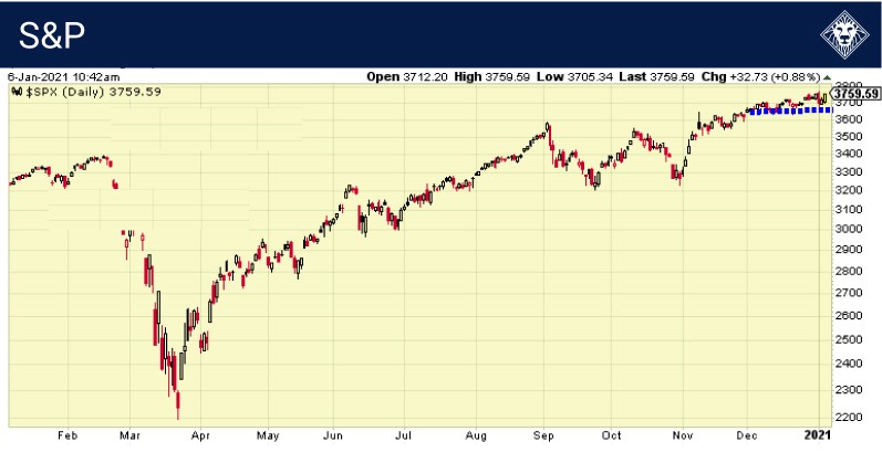 I have always found that the first few days, if not a couple of weeks of trading into a new year, is always a bit crazy. Lots of investors are readjusting their portfolio, and with last year’s returns some are certainly taking profit. The first few weeks of each year are often volatile, and despite the myths, not particularly telling of how the coming 12 months will unfold. 2021 began with yet another volatile Monday, which while damaging to many charts in the short-term, is unlikely to be the beginning of a major top in our opinion.