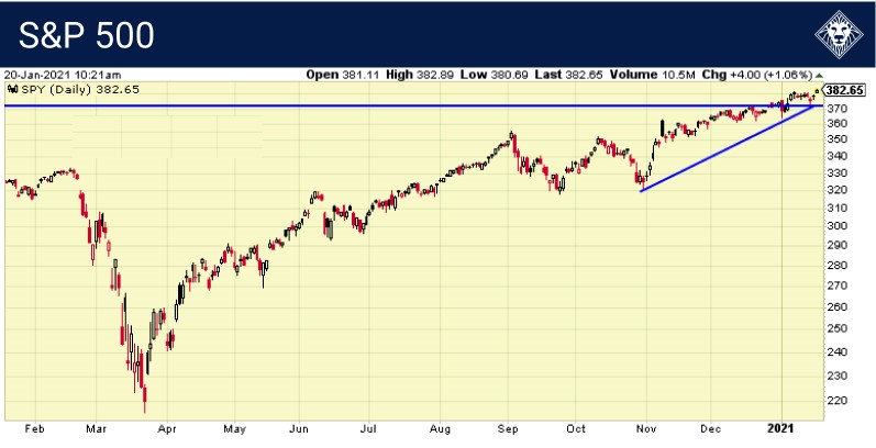 Looking at the first quarter, we expect the pullback to be relatively shallow (7-10%), short lived, and dominated by sector and group rotation. This should be a major buying opportunity. There is still a tremendous amount of cash on the side lines, and those who got out last year will be looking to buy back in, which could create a big run-up in equites.