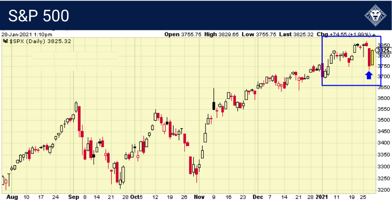 Yesterday’s selloff was strong to the downside, relieving some of the overbought condition hanging over the market. The HCM-BuyLine® remains strong and pullbacks should be bought. Today, the market is rallying back up, showing how much cash and short-term bonds investors have as they try to pick up deals from the selloff.