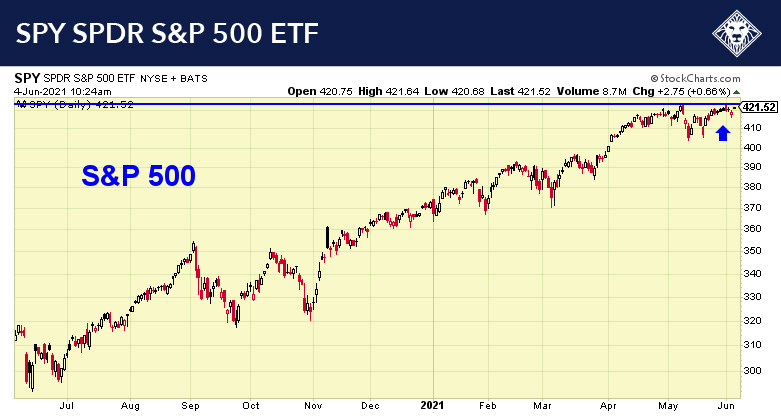 The S&P 500 has been basing for a few weeks and looks poised to break out now that the economy is reopening and should be fully open by June. Strong demand for travel and leisure is pushing up airline, restaurant, and entertainment equities. Bonds continue to underperform, and there are not many bright spots for fixed income at this time.