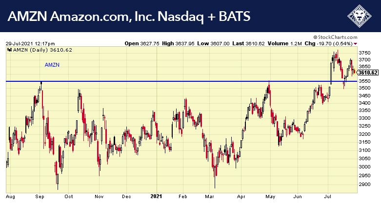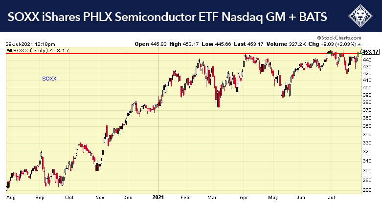 Like we stated in the past few Wealth Watch updates, AMZN has broken out of a 9-month base, and we expect that equity to move higher in the near-term. We are also bullish on SOXX, which is the ETF that tracks the semiconductor index. Chips have been in short supply and have held back some industries such as auto from being able to manufacture as fast as they would like. This is starting to ease up a bit, and we expect that by year-end it will not be nearly the problem it is now.