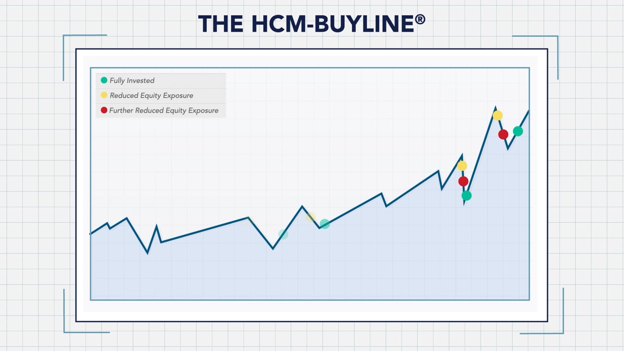 It is painful to watch the value of your portfolio drop, which is why we’ve spent years developing our proprietary HCM-BuyLine® to help defend assets. The HCM-BuyLine® uses a proprietary quantitative investment indicator to determine when we should be in or out of the market. This non-emotional, mechanical, and repeatable system helps take the emotion and the guesswork out of investment decisions. The graph below illustrates the dates when the HCM-BuyLine® precipitated a shift in asset allocations.